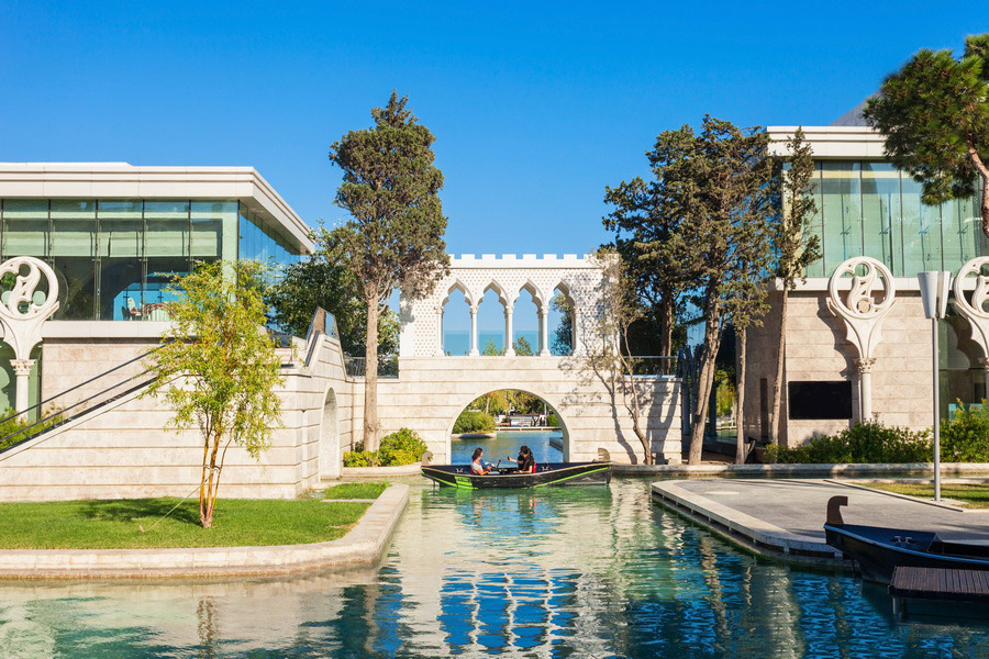 Few places in Baku provide a more relaxing escape than Little Venice, where gondolas glide through quiet canals just steps from the city center. This peaceful zone is laced with arched bridges and green islets, offering lovely views of the Carpet Museum and Flame Towers as you float along the water.
