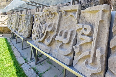 These inscriptions have no analogues in the Middle East; it was the first time that pictures of humans and animals were found on a Muslim monument. Unfortunately, the Bayil Castles' upper part is completely destroyed; only the bottom part of the walls and towers has survived. The inscriptions today are held in the courtyard of the Shirvanshah Palace.