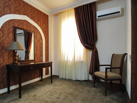 Diese geräumige Suite ist für einen komfortablen Aufenthalt von 1 oder 2 Personen ausgelegt. Das Zimmer ist im klassischen Stil (bräunlich-rot und beige Farben) dekoriert. Zusätzlicher Komfort wird durch elegante Interieur-Details, Ledermöbel, gedämpftes Licht erzeugt. Das Zimmer ist mit modernen Bad mit Duschkabine ausgestattet. Ausstattung: Sat-TV, Direktwahl-Telefon, Klimaanlage "Winter-Sommer".