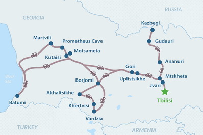 Eight-day Georgia Nature and Culture Tour has collected the best of nature sights and cities that open up Georgian culture. Some of the highlights of the tour include an old church beautifully located at the Kazbegi mount foothill, Prometheus cave discovered in 1984 and a multi-storied (!) rock hewn city of Vardzia. You will explore modern, yet ancient Tbilisi, rock cut Uplistsikhe, Rabati Fortress built in the 9th century and many more.
