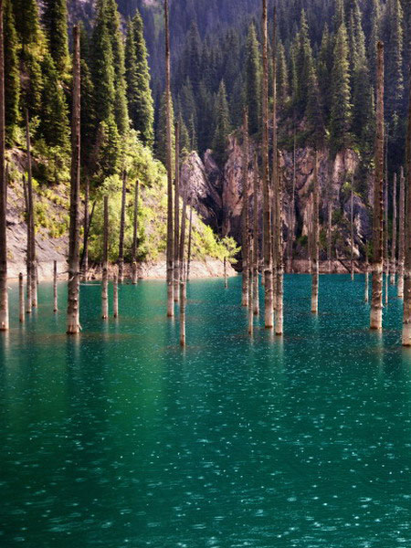 カインディ湖は、クンゲイ・アラタウ山脈に位置し、より有名なコルサイ湖の近くにあります。カインディ湖のユニークな自然は、この地域の特別な魅力と新鮮な美しさにあります。この渓谷には、針葉樹の風景に完璧に調和した人工の白樺林があります。