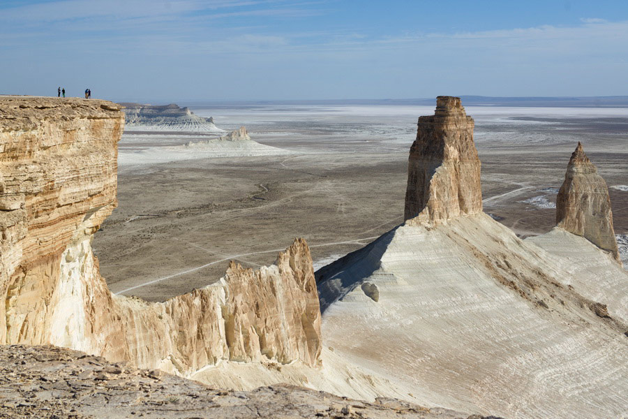 The only drawback of this adventure is the substantial time spent traveling – over 9 hours on the road! It takes 4 hours to reach Bozzhyra, an hour to explore the valley, and another 4 hours to return to Aktau. But the reward is well worth it: spectacular, almost fantastical landscapes await at three different viewing points. You'll have the chance to stand on the brink of towering cliffs, embark on an easy hike, and capture countless photos with the unique limestone formations known as the "Fangs" and "Dragon's Crest" serving as a dramatic backdrop.