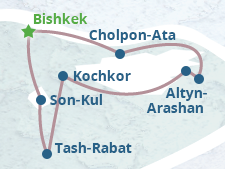 Son-Kul is a national pride of Kyrgyz people. A big lake with hundreds of kilometers of the shore line was inhabited for a very long time. Tracks of that ancient civilization can still be met on the shores of Son-Kul. This 8-day Kyrgyzstan Mountain Life Tour will allow you to learn many interesting facts about the history and culture of people living on Kyrgyz land as well as enjoy wonderful views of snow-capped mountains standing above the turquoise lake. Besides, the tour program includes a city walk in the capital of Kyrgyzstan – Bishkek.