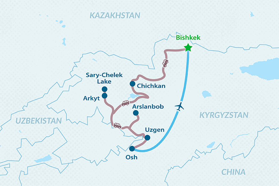* Single accommodation is possible in all places except for Arslanbob and Arkyt.