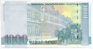 Национальная валюта Армении богата красочной палитрой и отображением исторического наследия страны. К примеру, на банкноте номиналом 1000 драмов изображен портрет армянского писателя Егише Чаренца. Слева на заднем плане видна гора Арарат. На обороте изображена запряженная в повозку лошадь на фоне старинного здания в Ереване. На банкноте же в 50 000 драмов расположено изображение кафедрального собора Эчмиадзина, слева - юбилейная надпись: "Христианство в Армении - официальная религия - 1700". В центре оборотной стороны находятся символические изображения короля Тиридатеса Великого, святого Григора Просветителя - распространителя христианства в Армении и горы Арарат на заднем плане. Справа - каменный орнамент церкви в Кечарисе (XII-XIII века). Банкнот защищен водяным знаком в виде армянского креста.