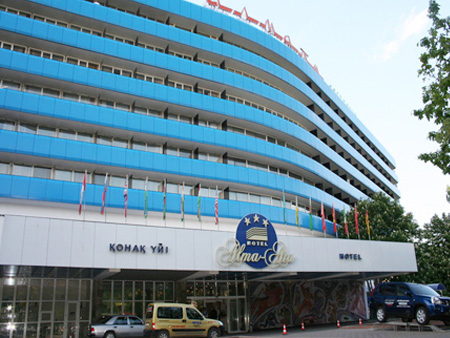 Здание гостиницы "Алматы", построенное в 60-е годы является одним из достопримечательностей Южной столицы. 8-этажное здание расположено в центре города и окружено парками, магазинами, бизнес-центрами и правительственными зданиями.