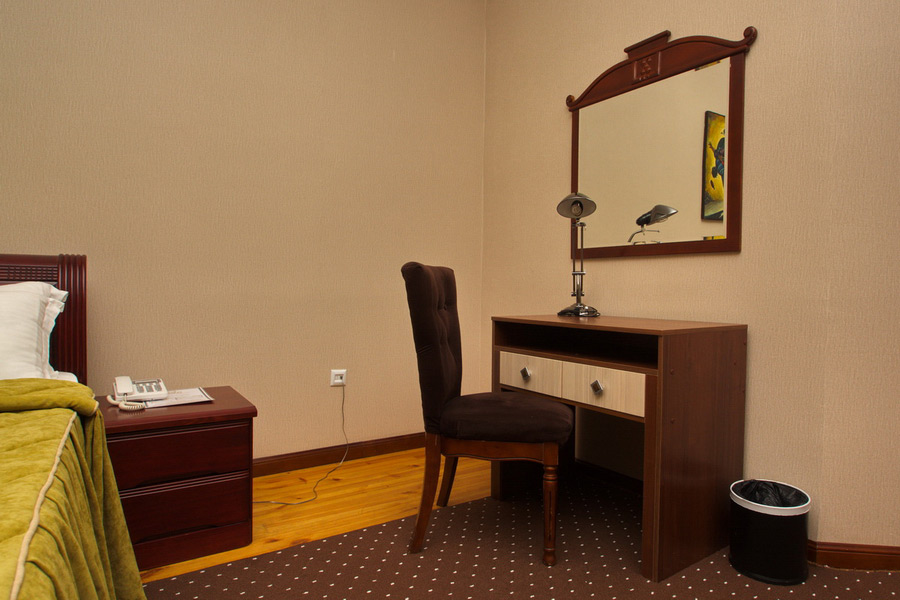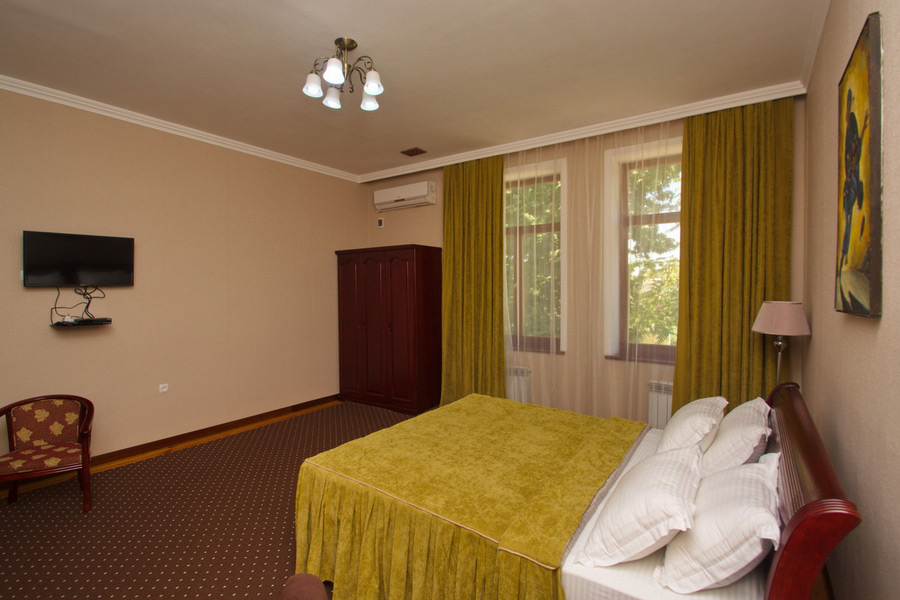 Приятный и очень просторный номер с мягкой двуспальной кроватью, и оснащенный всем необходимым для хорошего отдыха и досуга. Дизайн номера выражен привычным классическим стилем со светлыми стенами, и мебелью под дерево. Ванная комната просторная, и оснащена душевой кабинкой.
