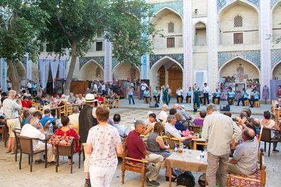 Фольклорное шоу в медресе Надир Диван-беги – это лучший способ познакомиться с танцевальными традициями Узбекистана. Шоу проходит во внутреннем дворе исторического памятника XVII века по вечерам – поэтому гости могут поужинать в приятной средневековой обстановке, наблюдая грандиозную постановку.