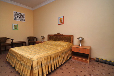 Просторный номер выглядит очень уютным благодаря своему декору. Национальные элементы утвари, текстильное оформление стен и кроватей придают особый шарм интерьеру комнаты. Удобные современные кровати позволят полноценно насладиться отдыхом.