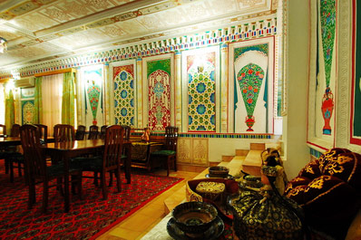 Два открытых дворика на территории этого небольшого отеля позволят гостям насладиться прохладой и тишиной вечерней Бухары.