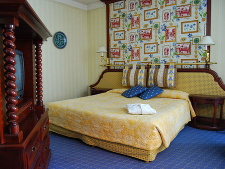 Номер оборудован также как и стандартный, но обладает большей площадью. Условно пространство можно разделить на две зоны: рабочую и зону для отдыха. Насыщенный синий и теплый желтый цвета, использованные, в оформлении номера позволяют расслабиться, и зарядится хорошим настроением.