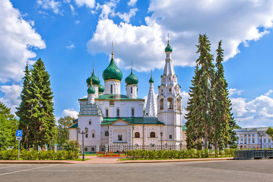 The most beautiful church of the city, the Church of Elijah the Prophet is the pride and joy of Yaroslavl and the favorite tourist attraction. It was built in 1647 – 1650 and is one of the most complete and best-preserved monuments of Yaroslavl. Built on the site of two churches, the Intercession and Elijah, the church is considered a real masterpiece of ancient Russian art. The main structure of the temple is a massive building on high foundation topped with five heads resting on light drums. The drums are decorated with arches and columns and surrounded by the rows of kokoshniks. But the main thing is, of course, the interior painting, made by famous Kostroma masters. They have no equals in beauty, richness and brightness of colors.