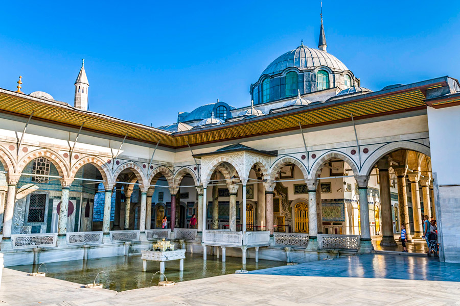 Passing through the roofed Gate of Felicity (Bâbüssaâde or Bab-üs Saadet) brings you into the Third Courtyard (III. Avlu), sometimes referred to as the Inner Palace (Enderûn Avlusu).