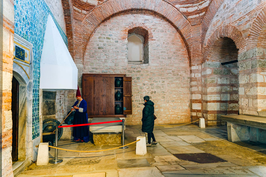 The Topkapı Palace Museum is a pilgrimage site for many Muslims worldwide. Its Privy Chamber (Has Oda), designed by Mimar Sinan (Koca Mi'mâr Sinân Âğâ) under Sultan Murad III, preserved the Sacred Relics (Kutsal Emanetler Dairesi) in the Privy Room (Has Oda) – including the cloak of the Prophet Muhammad and the swords of the first four califs.