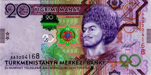 Turkmenistan national currency is Turkmen manat. It came into monetary circulation on the 1st November, 1993. One manat is equal to 100 tenge. All the old notes and coins had the image of Saparmurat Niyazov, the former president of the republic on the front side. However, in 2009, there was held denomination of the national currency, as a result of which, today is issued banknotes in denominations of 1, 5, 10, 20, 50, 100, 500 manat. 1 manat of the latest pattern is equivalent to 5000 manats of the old pattern. New bills approved by a new president, Gurbanguly Berdimuhamedov, are decorated with the images of prominent representatives of the Turkmen people, outstanding figures and architectural monuments of the country.