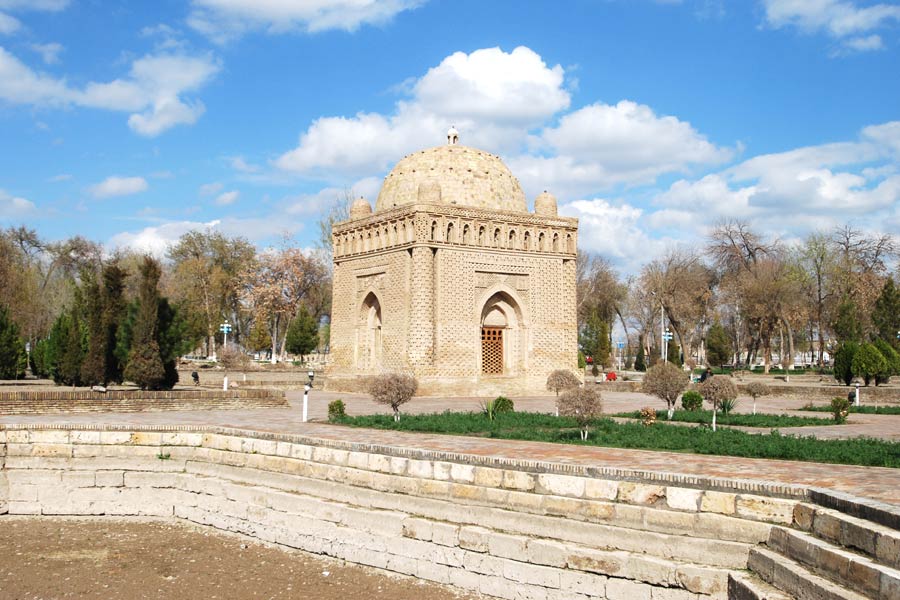 Step inside one of the top things to do in Bukhara and uncover the quiet brilliance of early Islamic architecture: the Samanids Mausoleum. Of all the medieval buildings in Bukhara, the Samanids Mausoleum is of special interest. This world-famous architectural masterpiece was built at the close of the ninth century. The mausoleum was erected as a family crypt immediately after the death of Ismail Samani's father. Later, Ismail himself and his grandson Hasr were also buried in it. It is interesting to note that erecting crypts was against Islamic law at that time, for Islam forbade erecting any post-mortem monuments upon the tombs of Muslim believers. However, the prohibition was broken in the middle of the ninth century by one of the caliphs himself, for whom a special as-Suli-biya Mausoleum was built. Ismail merely followed his example.