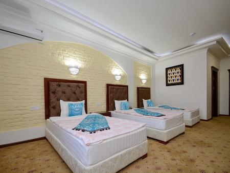 Excellent choice for living for a company of three friends or colleagues. Cozy room is designed in European style with oriental décor elements. There is everything one needs for a pleasant recreation including satellite TV, air-conditioner and free Wi-Fi. Light bathroom is equipped with a bath, WC and a tap.