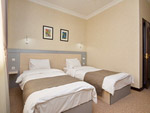 Compact, yet bright and well-designed rooms equipped for a comfortable stay. Each room has two single beds or one double bed, and a bathroom with a shower.