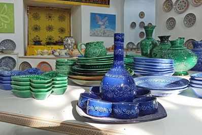 Tucked away in the historical part of Tashkent, a stone's throw from the renowned Chorsu Bazaar, you'll find the restored Kallakhona madrasah. This site today hosts the Rishtan Ceramics Center, an institution representing a pottery craft hailing from Rishtan with a tradition spanning thousands of years. The characteristic, resonating chime when you tap on Rishtan pottery, along with its rich blue hues, sets it apart.
