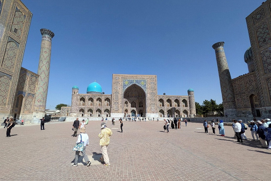 Meet your guide and driver at the hotel and visit Sitorai Mokhi-Khosa – the summer residence of Bukhara’s last emir, unique site combining Oriental and Russian architecture. Continue to the Mausoleum of Bakhouddin Naqshbandi and the House Museum of Fayzulla Khodjaev. At 14:40 transfer from the hotel to train station. Take the high-speed train, Afrosiyob, to Samarkand departing at 15:52, arriving at 17:25 (270 km). Upon arrival the driver will transfer you to the hotel in Samarkand.